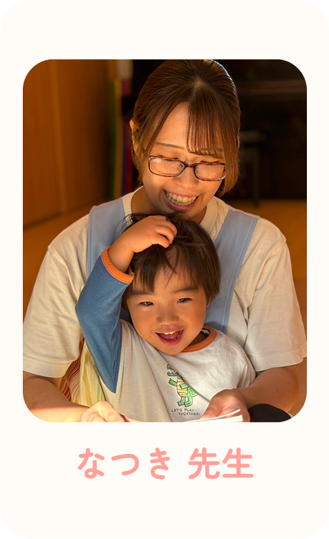 大切にしているのは「笑顔」です。そして子どもたちのお手本となれるよう意識しています。 「すごいね」「素敵だね」といった肯定的な言葉を選び、語尾も柔らかい表現を心がけています。新しく入った先生にも、言葉遣いの大切さを伝えています。